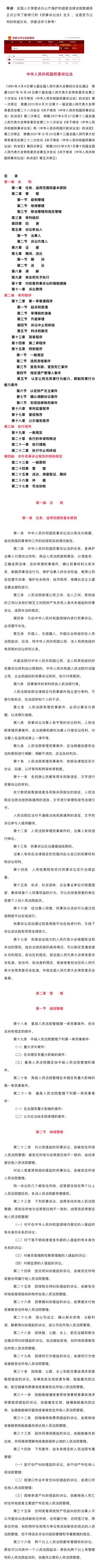 刚刚!官方公布:中华人民共和国民事诉讼法(全文),2024年1月1日起施行!